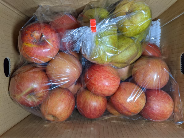 ふじりんご20個とラ・フランス6個です。 小サイズなので価格はリーズナブルです。