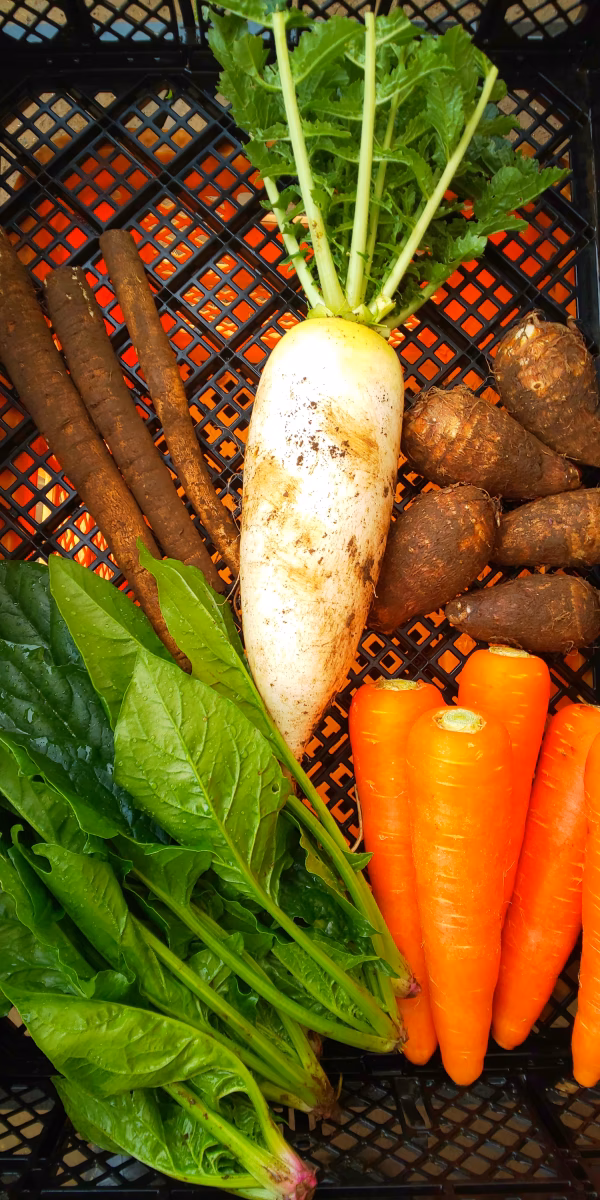 千葉県芝山町の旬の有機野菜(主に根菜)を
