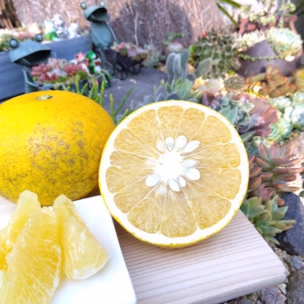 夏みかんの枝分かれで生まれたみかんで、夏みかんより酸の抜けがよく、ほろ苦さ甘酸っぱさがクセになる柑橘です!