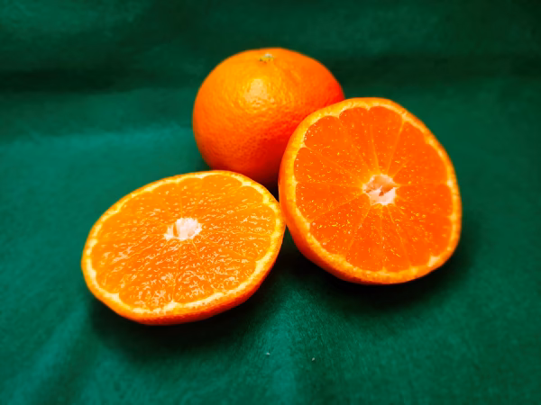 画像ではきれいなみかんですが、黒い点や傷がある果実があります。ただし、これらは果実の中味(おいしさ)には影響ありません。