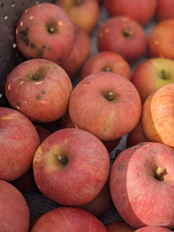 そのため、りんごに黒い斑点ができてしまう事がありますが、皮をむいていただければ問題なく召し上がれるものを出荷しております。