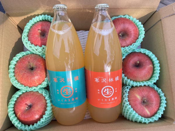 いくたま農園のりんごジュースは完熟の蜜がいっぱい入ったサンふじりんごだけを絞っています!