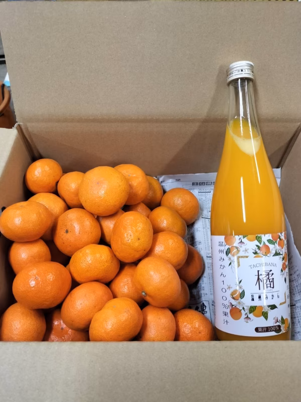 三好農園の新企画の商品です! 小さい愛媛みかん正味3キロ入と、今季の当園の温州みかんを絞ったフレッシュジュース720mlの詰め合わせです。 フレッシュジュースは糖度が13.8度くらいあります。この12月に絞ったもので、賞味期限は1年間なので、令和6年の12月です。 小玉みかんはsから2sサイズで、30〜35個くらい入ってます。箱は赤箱です。 ご注文頂き、送付シールが届いたら、速やかに発送します。届いたら,みかんが悪くなってないか確認してください。みかんは、早めにお召し上がりいただき、フレッシュな香りと食感をお楽しみください。