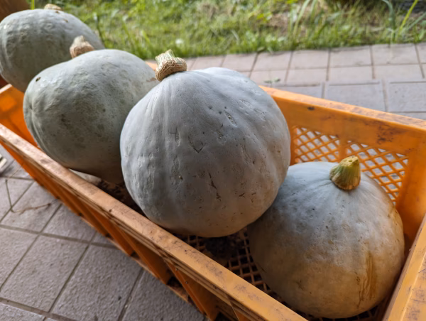 ホクホク感と煮崩れしづらいしっかりとした実が特徴の白九重栗カボチャ。当農園の九重栗カボチャは、特にホクホク感が強く煮物で召し上がっていただくと格別です。1個当たり1kg以上2kg未満のものをお届けします。