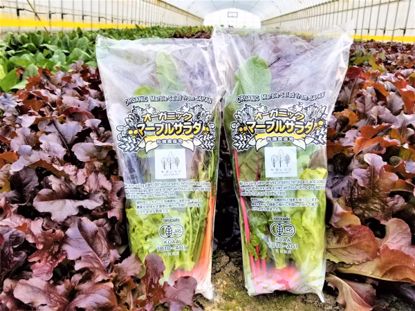 ほうれん草、ミズナ、春菊、ワサビナ、ルッコラ、グリーンマスタード、コカブ、ラディッシュ、レッドオーク、ロロロッサ、ロログリーン、レッドカラシミズナ、山東菜、スイスチャード、(時期限定:オクラ)