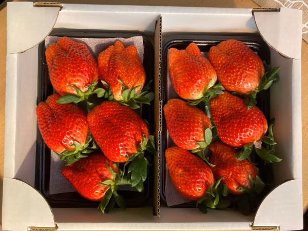 群馬県オリジナル品種[やよいひめ]を、不揃いですが、とにかく大粒のものを平詰めにしました。1箱2パック入りで1パックに5粒〜8粒入ります。収穫のタイミングで大きさが変わります。