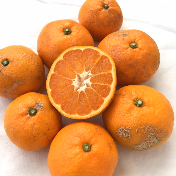 擦れた跡などや大きなサイズも多いため「訳ありの家庭向き」です。ただし味に影響はありません。中身はとても甘く酸味のバランスも良く、とてもジューシー。外皮は厚く、内皮はそのまま食べられます。たまに種もあります。ジュースして飲むのも最適!