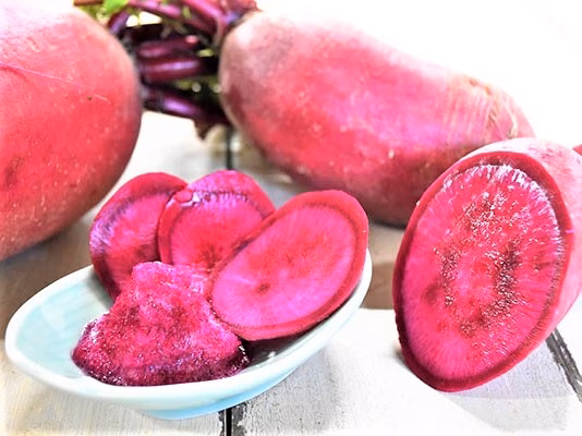 このページを閲覧されたお客様へ 皆様に、安心安全で美味しい野菜をお届けしたいと努力してきましたが、2020年~2023年パンデミックの影響もあり取引飲食店様の減少と野菜価格低下等の影響で大手農場等が市場参入し、野菜野菜によっては更に価格が暴落気味となっており、農薬を使わない野菜も同様にみられて道の駅等の産直販売店では価格を下げて販売せざる負えない状態で、商品販売価格に対し経費上昇(肥料や資材・燃料費等の高騰)や異常気象の影響もあり、農業生産現場はかなり厳しくなっています。 現状、私の農場を含めて中小農業生産者は非常に厳しい状況です。 生産野菜収入での生活および農場経営に、かなり厳しい状況が迫ってきており淘汰の時代かもと感じています。 戸島農園NSの農場では、こだわりとして良質な有機質肥料を主として使用し、農薬不使用(無農薬)で栽培しておりますので、初めてご購入のお客様やリーピート購入のお客様に美味しいと評価頂けております。 これまでにご購入いただけてないお客様にもぜひ味わって頂きたいと思います。 ご購入して頂けるお客様には、戸島農園NSも含めて中小農業生産者をご購入いただくことで、助けて頂ければ幸いです。 ※有機質肥料栽培や農薬化学肥料不使用又は化学肥料低減栽培は、気候や害虫の食害等の影響が有り、生産量の安定性に欠けると云う面があり、その分お値段が高めになります。申し訳ありませんがご理解御了承の上お買い求め頂けますと幸いです。 減ビニール資材:戸島農園NSでは農業資材や梱包資材のビニール資材等の使用を極端に減らしております。無農薬無化学肥料の栽培方法と同様、ビニールマルチを微生物分解マルチに変えて、土にかえりやすい、循環性の高い農業生産を目指してます。 各種セット品のおまとめセットご要望も承ります。 お気軽にお申し付けください。 ▼商品概要 ミニサイズのむらさき大根で、サラダやマリネもお勧めです。  種蒔き時とその後の農薬類は使用しておりません。 ▼品種・味の特徴 生食がベストです! サラダやマリネ・おろし大根がおススメです。 甘みが強く辛味少ないので美味しいです。 加熱すると、アントシアニンが水分に溶けて色落ちします。 ▼数量、分量の目安 中も真っ赤なミニ大根 約1.0㎏から サイズにより個数はバラです。 ▼栽培/生産方法、こだわり 農薬不使用栽培 ▼注文に際しての注意点(配送方法や納期指定など) 発送後のリスクに関しては、責任を負うことが出来ませんのでご了承下さい。