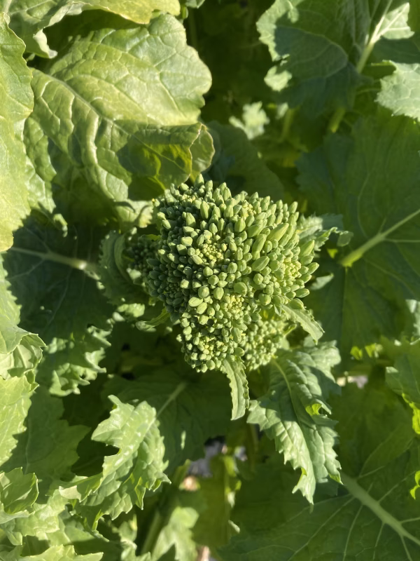 新鮮な菜花です。頂花終わり、側枝となります。蕾が小さくなりますが柔らかさ確認しながらの収穫をしております。