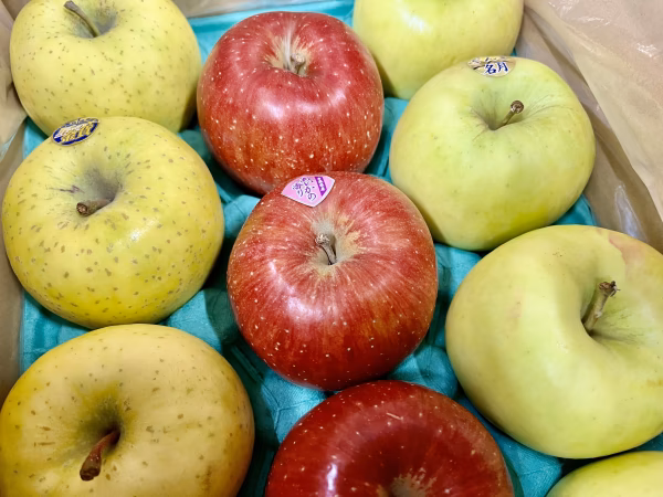 ▼自己紹介 黒石市の高台にある観光りんご園です。 高台にあるため、眺望が良く岩木山と津軽平野が見渡せます。 毎年9月から11月15日まで営業しており園内ではりんご狩りが楽しめます。 園内には214本の木が植えられていて、品種は20種類以上になります。シーズンによって旬の品種が楽しめます。 ▼商品概要 3品種ミックス 秀 3キロ ◉あいかの香り ◉ぐんま名月 ◉星の金貨 今回出品しました商品の等級は【秀】です。 また、当園では以下の通り4等級に品質分けしています。 ⚪︎最高級 ⚪︎特選 ◉秀 ⚪︎訳あり ▼品種・味の特徴・食べ方 【あいかの香り】 あいかの香りは甘味が口に広がり、後からさっぱりとした酸味を感じられるバランスのよい上品な品種です。 果肉の肉質はやや荒く、さくっとした適度な歯ざわりで、噛むと果汁があふれ出てきます。 見た目は赤く、綺麗な皮肌をしていて見栄えもいいです。 【ぐんま名月】 ぐんま名月は甘味が強く、酸味も適度にあるため近年人気が出ております。歯ざわりもよく、舌触りが爽やかです。 色は青〜黄色に少し橙色がはいる綺麗見た目の品種です。 【星の金貨】 星の金貨は黒石市にあるりんご研究所で生まれた食味がよく、貯蔵性が高い品種です。 甘味が強く、酸味も兼ね備えているため人気があります。 洗練された味と香りで根強いファンが多い品種です。 また果皮が薄いため丸かじりにも適しています。 ▼数量、分量の目安 9個から12個 3キロ ▼栽培/生産方法、こだわり りんごは青森県の津軽全域で栽培されていますが、その多くは平地で栽培されています。黒石市では山の上でりんごを栽培しており、朝晩と日中の寒暖の差が激しく、りんごの栽培に適していると言われています。 一つ一つ私が手に取り選果しております。 新鮮なりんごをお届けするように心掛けています。 沢山の方に旬のりんごを楽しんでいただけたらと思います。