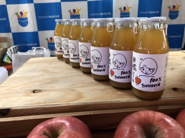 展伸園で栽培したサンふじのみを使用した、無添加の100%ストレートジュースです。