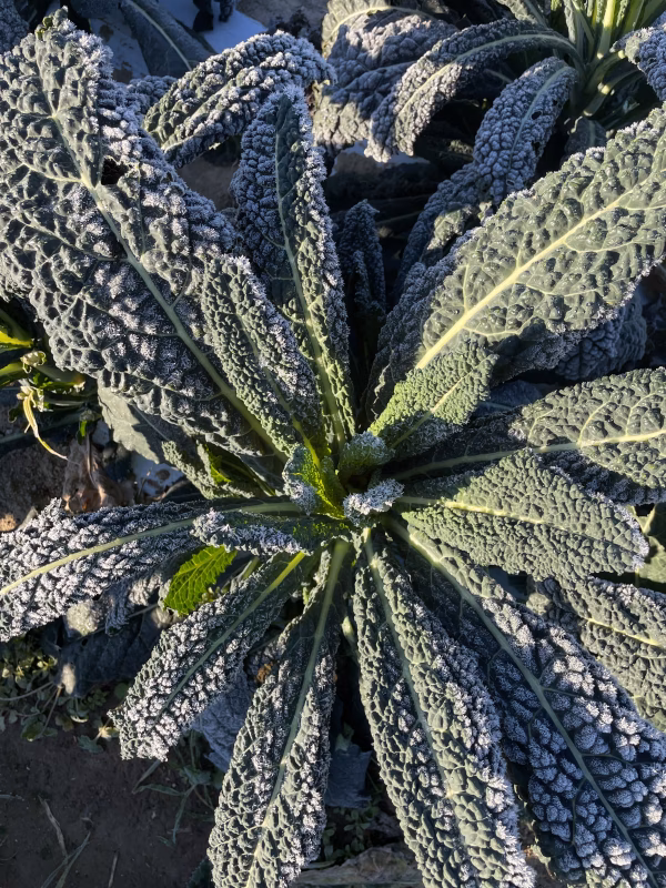 ▼商品概要 寒さにしっかり当たった肉厚で甘みのあるカーボロネロです ▼品種・味の特徴 色が濃く、野菜の出汁が出ると評判です ▼数量、分量の目安 100gで3枚から5枚程度です。 ▼栽培/生産方法、こだわり 化石燃料をなるべく使わないように、露地栽培にこだわっています。 化学肥料不使用です ▼注文に際しての注意点(配送方法や納期指定など) 寒さに当たっている為、葉の表面が紫色になっている場合がありますが、味や品質に問題はありません。甘みがある証です。