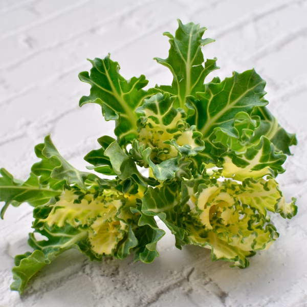 芽キャベツとケールを掛け合わせ増田採種場が品種開発をした野菜 プチヴェール® ホワイト。花びらのような形で色が鮮やかな為、食卓が晴れやかになります。