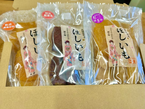 商品状態 皮丸、星あかね丸干し、シルクスイート丸干し、紅はるか丸干しが入っています。