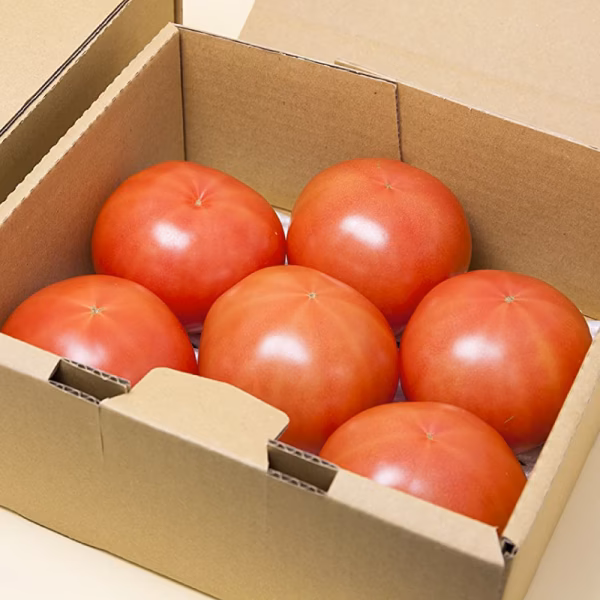 お届けするトマトの品種「富丸ムーチョ」は欧州で人気の赤色トマトの硬さと、日本で人気のピンクトマトの食味をあわせ持つブランドトマト。糖度と酸味のバランスに加え、更にうまみを生み出すグルタミン酸も含まれており生でも加工でも美味しく食べられる大玉トマトです。