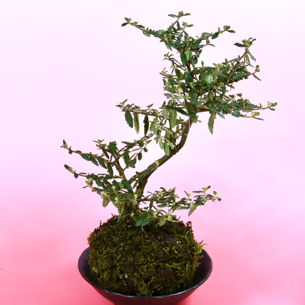 盆栽の定番「天皇梅(てんのうばい)」と高野山麓で採取しまし這苔を使った苔玉です。