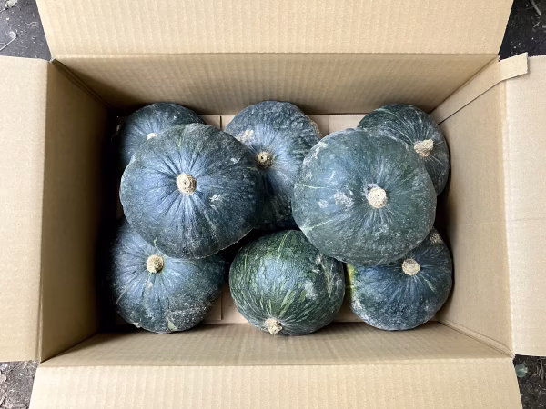 鹿児島産のカボチャ(栗将軍)注文を受けてから、貯蔵してあるAB品大中小混合箱詰めし箱込み9キロ前後を発送します^_^