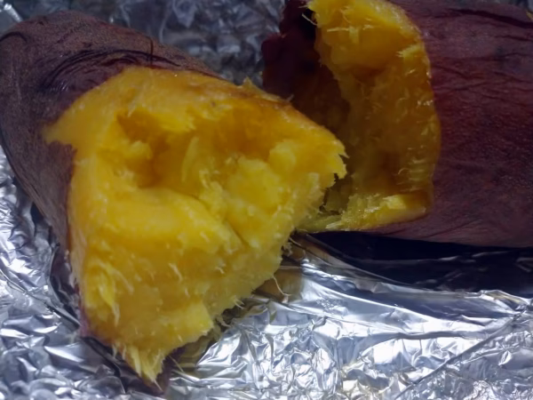 焼き芋にするとしっとり甘いのが特徴です。比較的小さいものや細いものなら、表面を洗い魚焼きグリルで30分焼くと焼き芋ができます!(アルミホイルを下に敷き焼くのが良いと思います)