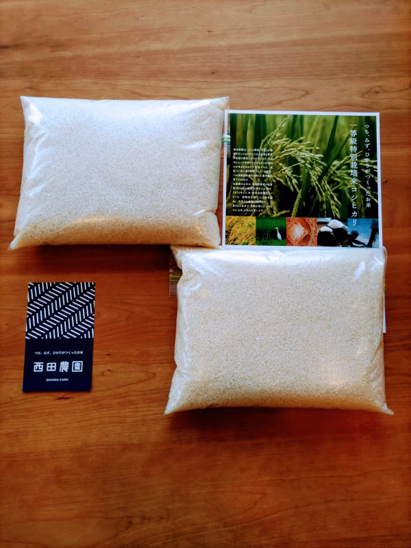 無農薬コシヒカリ【分つき精米】 4kgの商品です。 【7分づき・5分づき・3分づき】 を、ご注文の際お選び頂けます。 有機質肥料のみで栽培いたしました。 100%農薬不使用のコシヒカリです。 つきたての精米をお届けいたします!🌾🌾 【精米日((土曜・日曜))】 ご不便をお掛けして申し訳ございません💦 何卒宜しくお願い致します。 ジップ式のビニール袋に2kgのお米が 入っているものが2袋です。 4kgなので宅急便が80サイズで 発送出来ます。^_^ こんにちは! 埼玉県熊谷市の「西田農園」です。 代々、熊谷市で農業を営む専業農家です。 「エコファーマー」として埼玉県より 認定され環境保全型の農業を行っています。 「埼玉農林業賞」など県知事賞を4回受賞 する農作物を育てております。 「豊かな大地は、豊潤な農作物を育てます」 私たちは自然の恵みに感謝し サスティナブルな農業を行います。 皆さまが、笑顔になるよう 「真心」を込めて育てております。 どうぞ、宜しくお願い致します。 <商品概要> 有機質肥料と100%農薬不使用で 育てております。米ぬかや籾殻・わらは 全て田圃に戻し循環型の栽培を行ってます。 天然の資材(海藻のエキスやにがり等)で ミネラル分を加えて栽培しております。 もちもちとした粘り、しっかりとした食感 豊かな香り噛むほどに旨味や甘味を 感じられるお米です。 2016年より「米・食味分析鑑定コンクール 国際総合部門」に、お米を出品し高得点を 獲得しております。 (お客様からの声) ・西田さんのお米を食べたら 「私、お腹を満たすために食べてた…  今、心が満たされている」  と言うくらい美味しかった! ・私、いつの間にか2杯食べてる ・「子どもが自分からお米を食べてる!」  幸せです、ありがとう…  …等のお声を頂戴しております。   <産地の特徴> 米を育てるのは秩父の山々から流れてくる 荒川のミネラル豊富なお水です。 用水路には、毎年カワセミが飛来し オニヤンマやゲンジボタルなど様々な生物が 見られる熊谷は思っていたより… 山に囲まれた自然豊かなところです! 味と安全性には自信があります! よろしくお願いいたします。😊 🌾🌾🌾🌾西田農園🌾🌾🌾
