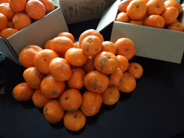 ▼こだわりの栽培 樹上でじっくりと完熟した果実を収穫後、さらに貯蔵庫でじっくりと熟成させた二段熟成仕上げのおみかんです。酸味の苦手な方にも人気の甘みたっぷりのおみかんです。 ▼こだわりの収穫 寒さが増し、甘みが増した完熟収穫のため、甘みが強く、濃厚な味わいが楽しめます。 ▼産地の特徴 愛知県蒲郡市と静岡県の三ケ日みかん産地に挟まれたみかんのサラブレッド産地「愛知県豊橋市」!近隣のお客様もこのみかんを求めてお越し頂いております! ▼品種のポイント 袋が薄く、甘みの濃い「宮川早生」のため、「薄皮」「濃厚」「甘い」のみかん好きが求める三拍子が揃った完熟の味わいが楽しめます。採れたてのおみかんとは違い、じっくりと熟成させた「甘み」と「旨味」の美味しさを最大限に引き出しております。 【本商品の規格について】 こちらの商品は3S~3Lサイズまで入ったサイズ混合、外観に難あり、生キズ有のご家庭用の訳あり商品になります。味は美味しく召し上がれますが、生キズの通常の商品よりも日持ちしない果実も含まれますので、涼しいところに保管の上、傷みそうな生キズ果実から順にお早めにお召し上がり下さい。