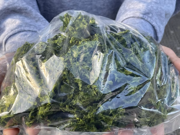 *アオサは自然の海で育てています。異物については良く確認していても、甲殻貝類・網の破片等の異物が混ざる事があります。ご使用前に異物がないか良く確認してご使用ください。