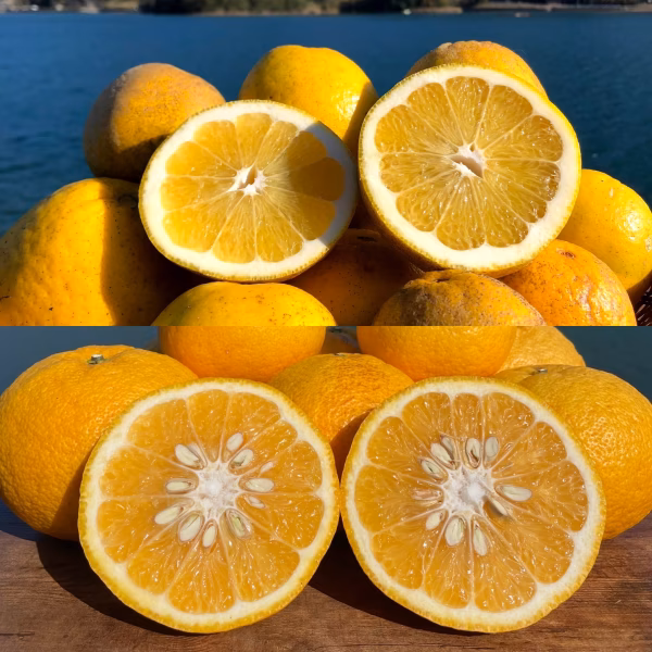 天草では天草晩柑(あまくさ晩柑)、愛媛県では愛南ゴールドや美生柑(みしょうかん)と呼ばれています。