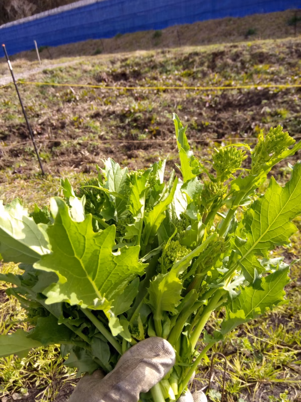 イタリア品種の西洋ナバナです。チーマディラーパといわれるこの品種は日本のナバナとよく似ており、少し個性的な風味が感じられます。今季は苦味控えめの食べやすいものに仕上がってますので塩やオリーブオイルなどでシンプルに味付けするのをおすすめしています。