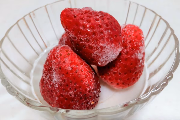 冷凍イチゴを贅沢にそのままかき氷にして食べると冷たくてとても美味しいです。練乳をたっぷりとかけるのがオススメ!