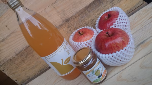 - ジャム: 原材料:りんご(秋田県産・特別栽培)、砂糖(有機JAS認証)、レモン果汁、ペクチン(りんご由来) 内容量:150g 製造者:あお葉フーズ 秋田県湯沢市湯の原2-4-54 TEL0183-78-0863 ジュースは写真で表示