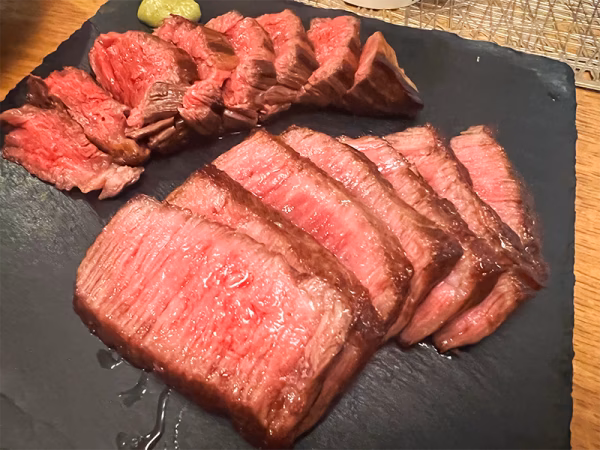 カイノミはトモバラの中から切り出した希少部位。トモバラと聞くと、脂っぽいのかな?と想像しがちですが、実は赤身もあり、バランスが絶妙なところなんです。何よりもものすごく味わいが濃い。牛さんの身体の内側(内部)寄りなので、ふわふわ柔らかく、味わい濃厚。美味しい塩で食べるのがおすすめです!よりその味わいをご堪能いただけます。余韻が長いので、ボルドーワインなどクラシカルなワインとの相性も間違いなし。スーパーなどでもなかなか見かけない部位だと思いますので、在庫のあるうちにぜひです!