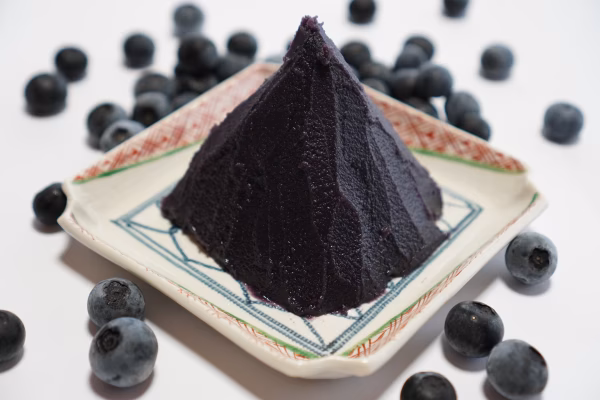 簡単に裏ごしした私たちの農園のブルーベリーが