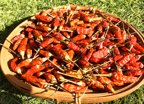 沖縄の太陽の恵みたっぷり浴びた、乾燥島とうがらしをお届けいたします。