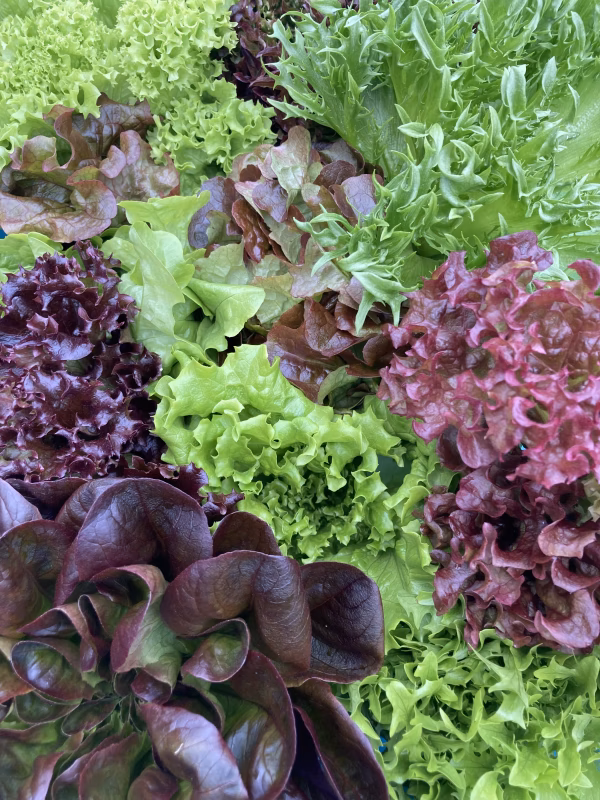 世界中のいろいろな品種のレタスの中から6〜7種類(600g以上)とホワイトセロリ、クレソン各1パックを80サイズの段ボールでお届けします。 レタスはグリーンリーフ3種類、サニーレタス2種類、サラダ菜2種類、オークレタス3種類、フリルレタス6種類の中からその日に収穫できる6〜7種類の詰め合わせになります。 いろんなお味、食感の違うレタスを食べ比べして楽しんだり、数種類の葉っぱをつまんで彩り良いカフェ風サラダも簡単に作れます♪