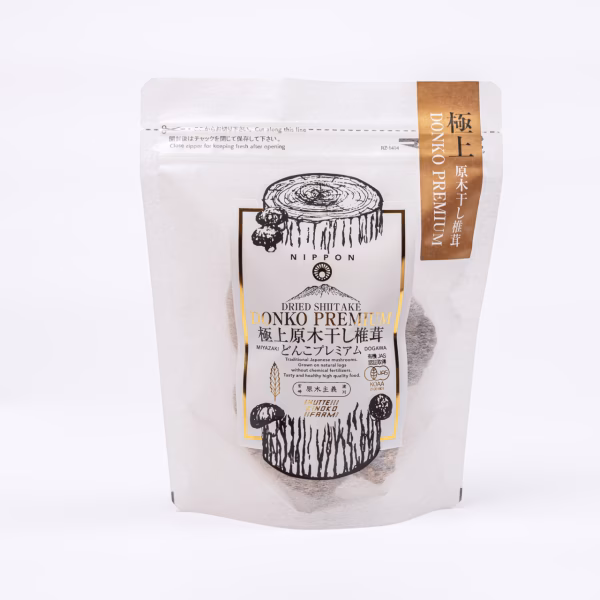 有機JAS認定を受けたオーガニックな原木干し椎茸の中でも、肉厚で大きなどんこサイズだけを詰め込んだ、特別な逸品です。