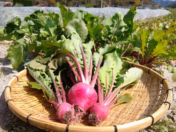 中も赤みが有り、生食サラダも出来ます。食感はシャリシャリとして甘みが あり、サラダや酢の物等で美味しいです。