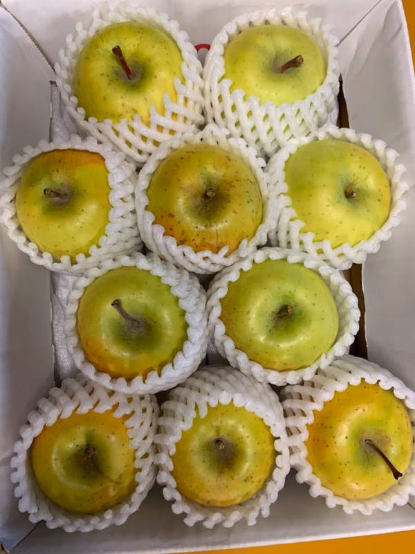 さいとうファームから希少品種『黄金のサンふじ』をお届けいたします。 黄金のサンふじってどんなりんご? 見た目は、綺麗なりんごではないし、なんか小さいって感じのりんごです。 よく知られているりんごではシナノゴールドやぐんま名月のようなりんごです。 でも、食べてみると・・・ 蜜も入りやすく、甘さも普通のサンふじ以上です。ほのかな酸味もあり、ついついもう一つと手が伸びます。 果汁もたっぷりで、甘いりんごが好きな方にはこの時期イチ押しのりんごです。 生産量も少しづつ増えてはきましたが、当ファームで取れるりんごの2%足らず。 まだまだ知られていないりんごです。 今回お届けするりんごは、サイズが小さいため規格外としての販売です。重さは1個当たり200g前後となります。 ”蜜入り”りんごとなりやすい品種ですが、この時期になると少しずつ蜜がりんご全体に溶け込んで消えていきます。でも大丈夫です!目には見えなくてもしっかり味に残っています。 また、小玉サイズのりんごはこれからが本領発揮です。大きいサイズのりんごはシャキシャキ感が薄れるのが早いんです。大きくなれなかった分ギュッと引き締まった小さなリンゴは歯ごたえもしっかりあり美味しく頂けます。 一人1個の食べきりサイズで朝食にもぴったりです。 ☆りんごを美味しく食べるには? りんごは冷やすと糖度が増して感じられる果物です。冷蔵庫で冷やしてからお召し上がりになるとおいしくいただけます。 ☆りんごはどうやって保存する? りんごは、低温で湿度の高い場所で保存すると長く日持ちする果物です。  ご家庭でりんごを上手に保存するには、りんごの表面を霧吹きなどで濡らし、そのままビニール袋にいれて密封して、冷蔵庫の野菜室で保存すると、長く日持ちします。霧吹きでりんごの表面を濡らしておくと、冷蔵庫の中に保存しても水分が失われるのを防ぎ、みずみずしい状態を比較的長く保つことができます。