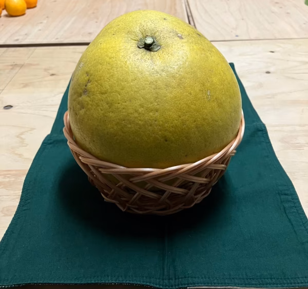 ○晩白柚(ばんぺいゆ)…世界最大の柑橘類と言われ、1玉1.5〜1.7㎏程の大玉で見た目のインパクトに圧倒されます。
