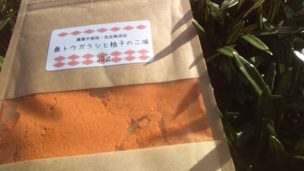 島トウガラシ赤と柚子の二味です(乾燥粉末)。どちらも農薬不使用・無化学肥料家畜堆肥不使用の自然栽培です。