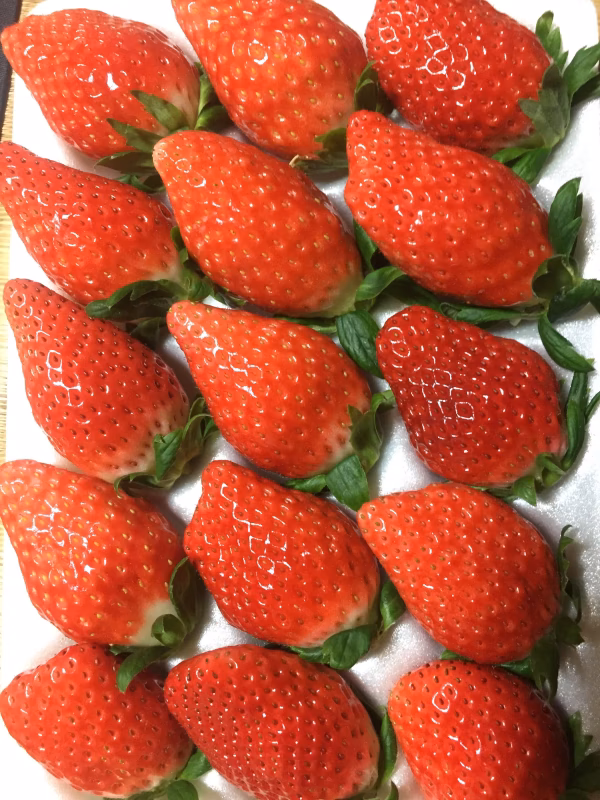 静岡の温暖な気候と有度山の南斜面を利用した「久能の石垣イチゴ」です。完熟した甘いイチゴで糖度は12〜14です。その中から選りすぐりの大粒イチゴをホールパックに丁寧に詰めています。