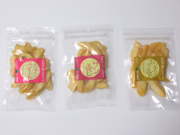 信州・小布施の川上農園で丁寧に育てたりんご「シナノスイート」「シナノゴールド」「サンふじ」を贅沢にしっとりドライにしました。