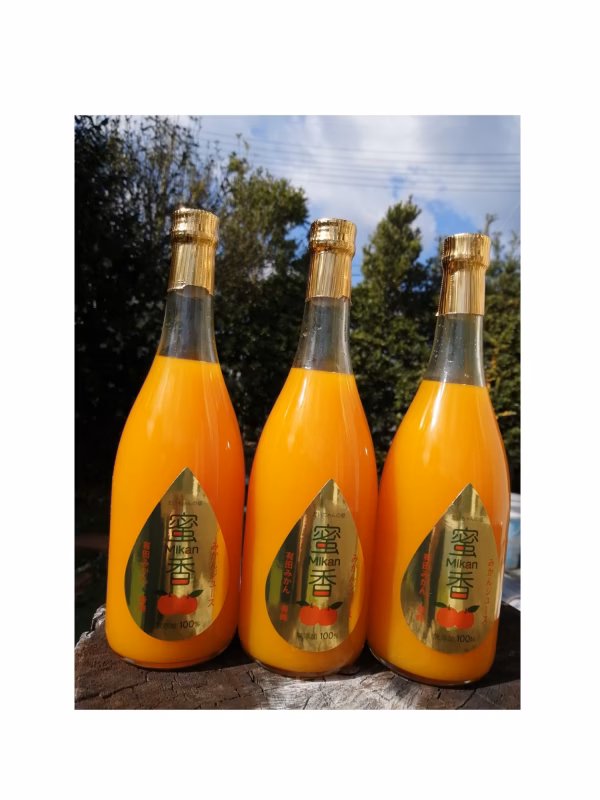 早生完熟みかんと春峰の果汁100%・ストレートブレンドジュース「『蜜香』mikan」は、越年し完熟させた甘みたっぷりのみかんと、アクセントとして春峰をミックスした、なかなかお目にかかれない製品です。