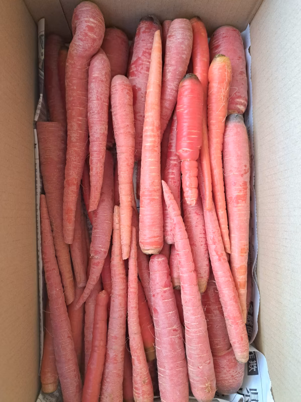 不揃い品とは、土壌中の環境下で形の歪で短い、二股、軽微な割れや虫食い被害の人参たちです。