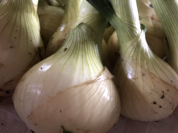 新玉ねぎは、みずみずしくて柔らかい食感で、甘く辛味が少ないです。
