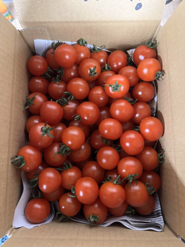 赤く!艶ありピカピカ美味しいミニトマト 昔ながらのおすすめミニトマトです♪ ▼品種・味の特徴・食べ方 品種:TY千果 ちょうどいい酸味で食味にすぐれています。果色は濃赤色で光沢がありピカピカ‼︎キレイです。 果重は15~20g。果形はきれいな球形で果ぞろいがよい。ヘタの形状も美しく、是非ともおすすめのミニトマトです。 ミニトマトは千果と言う普通の丸いトマトで甘くてリコピンが多いが特徴です。 トマトの美味しい食べ方はヘタを取りそのまま食べたり、おやつやおつまみ弁当やピザやサラダなど料理に インターネット【Googleやyahoo】にレシピがありますので調べてみると美味しそうです! ▼栽培/生産方法、こだわり 『温室ではおすすめの環境制御 灌水では時間が来ると自動で水が出ます。     ココバック栽・袋栽培培』 栽培では色々やっています袋栽培やヤシガラを使ってココバック栽培をやっています。 ココバッグ栽培とは、ココナッツのヤシガラを使った培地に作物を植える、隔離栽培システムです。 今までの土に植える栽培でなく、地面から離した栽培をすることにより、土壌病害の発生を防ぐことができます。 栽培だけでトマトの酸味が違いがあります新鮮で美味しいです! ▼搬送について ミニトマトをダンボールに入れてトマトの傷や割れをチェックして箱詰めをします。しっかり見てもトマトは温度の差や搬送中に振動などで割れが出る場合があります。 ヤマト運輸のトラックの振動を考えダンボールの上と底に新聞やプチプチなどを入れてあります。 ▼ミニトマト収穫、出荷について 収穫では午前中にミニトマトを取ります、午後から選果機にミニトマトを通して箱詰めして発送の流れになります。 サイズは『M』になります。 収穫日が分かりましたらメッセージでお知らせしようと思っています。 今川農園を宜しくお願いします。