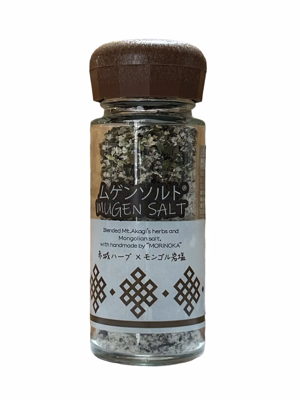 赤城山の大自然で育てたハーブを使い、モンゴル国秘境で採れた岩塩と共にブレンドした香り高き「ムゲンソルト」。添加物を使用しない自然でエネルギッシュな旨味は、肉料理、魚料理、炒め物、サラダやスープなど幅広い用途でご利用いただけます。オリーブオイルとの相性も抜群で、その可能性はまさに無限大。