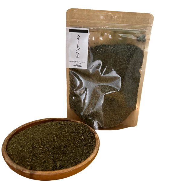 自然栽培で育てたスイートバジルを、収穫してすぐ洗浄~乾燥した、