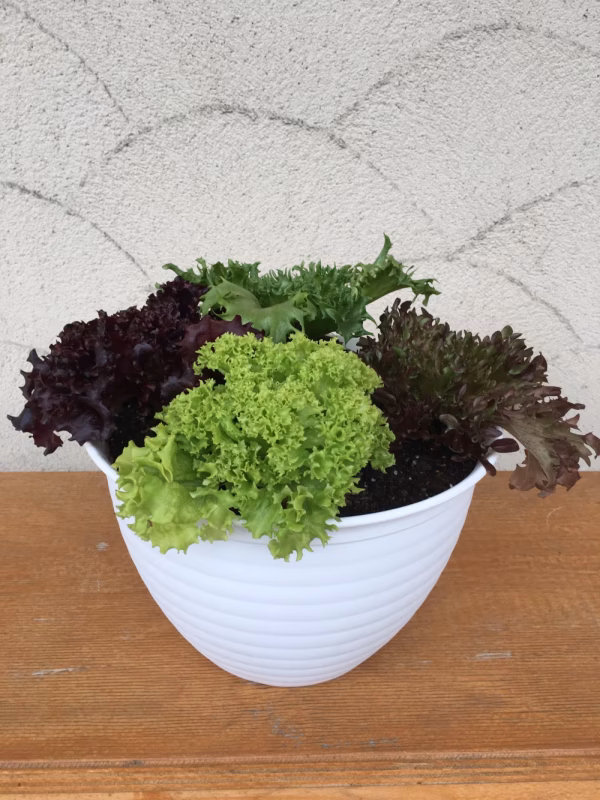 こちらの商品は3〜4種類のレタス4株の花束のような寄せ植えです。ゆっくり眺めながら育てながら新鮮野菜が楽しめます。