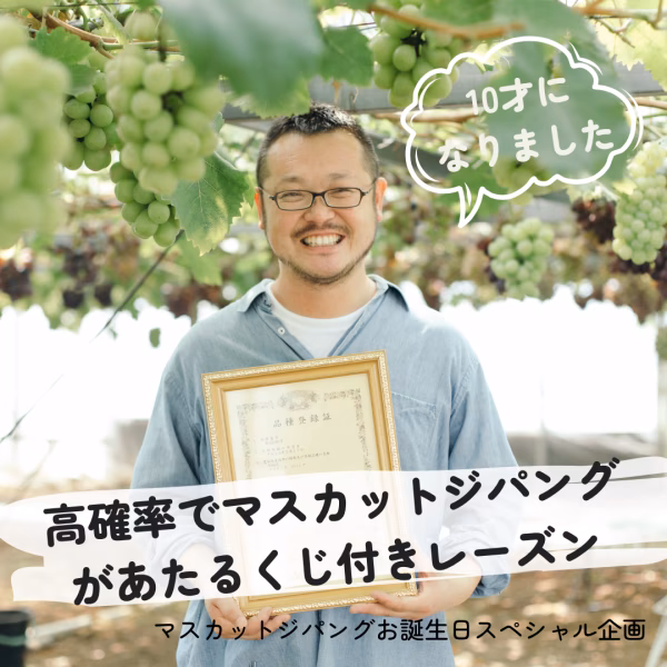 ジパング誕生日を記念して、毎年恒例20分に1の可能性でマスカットジパングが一房あたるくじつきのレーズンを出品いたします!