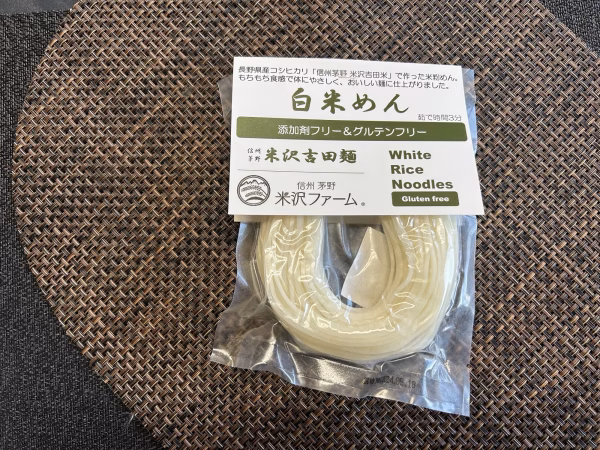 当ファームにて収穫された「信州茅野 米沢吉田米」の加工品(米粉めん)となります。長野県茅野市米沢地域で収穫されたお米は、その昔・諏訪高島藩主 お殿様の御膳米とされ献上されており、また諏訪大社の神田として献上していた記事もあり、古代より良質米の地でした。 この良質米の地で収穫されたお米で作った米粉めん。「もちもち食感」で体にやさしく、おいしい麺に仕上がりました。白米めん・玄米めんともに「添加剤フリー&グルテンフリー」となります。 ◆おすすめの食べ方 白米めん:お勧めの茹で時間は約3分です。お好みで調整してください。 玄米めん:お勧めの茹で時間は約4分です。お好みで調整してください。 茹であがり後に流水で洗うと、さらにおいしく召し上がれます。 ◆おすすめの用途 家使い/ギフト/お歳暮/お祝い/贈答品など ◆保存方法 直射日光・高温多湿を避け冷暗所で保管してください。 ◆包装方法 真空包装/100gづつ小分け包装 ◆ 栄養成分表示100gあたり 白米麺:(100g)  熱量:188kcal たんぱく質:2.3g 脂質:0.6g 炭水化物:43.3g 食塩相当量:0.01g ■商品の内容について ・白米めん[100g×10個]   原産地:長野県 茅野市(米)/製造地:福島県須賀川市/加工地:福島県須賀川市   賞味期限:製造日から1年間 ■原材料・成分 米粉(長野県茅野市米沢産)・でん粉(国産) 添加剤フリー&グルテンフリー 1袋 100グラム 中太麺 幅3㎜×長さ20㎝  ■注意事項/その他 お召し上がりの際は、脱酸素剤を取り除いてください。 調理の際、熱湯を使用しますので、やけど等に十分注意してください。 原材料名表示の中にアレルギー等疾患に心配のある方は、ご注意ください。 急激な温度変化があった場合、袋に水滴が結露して麺がふやけたり、硬くなる場合がございますのでご注意ください。 ※保存方法や賞味期限にご注意ください。
