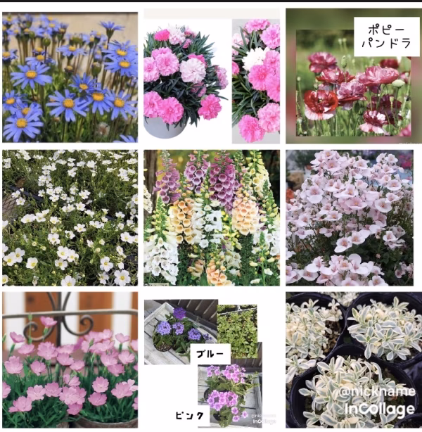 ★四季咲芳香性なでしこ桜★四季咲花色の変化するカーネーション★ジギタリスダルメシアン★シレネユニフローラ★アレナリアモンタナ★フェリシア